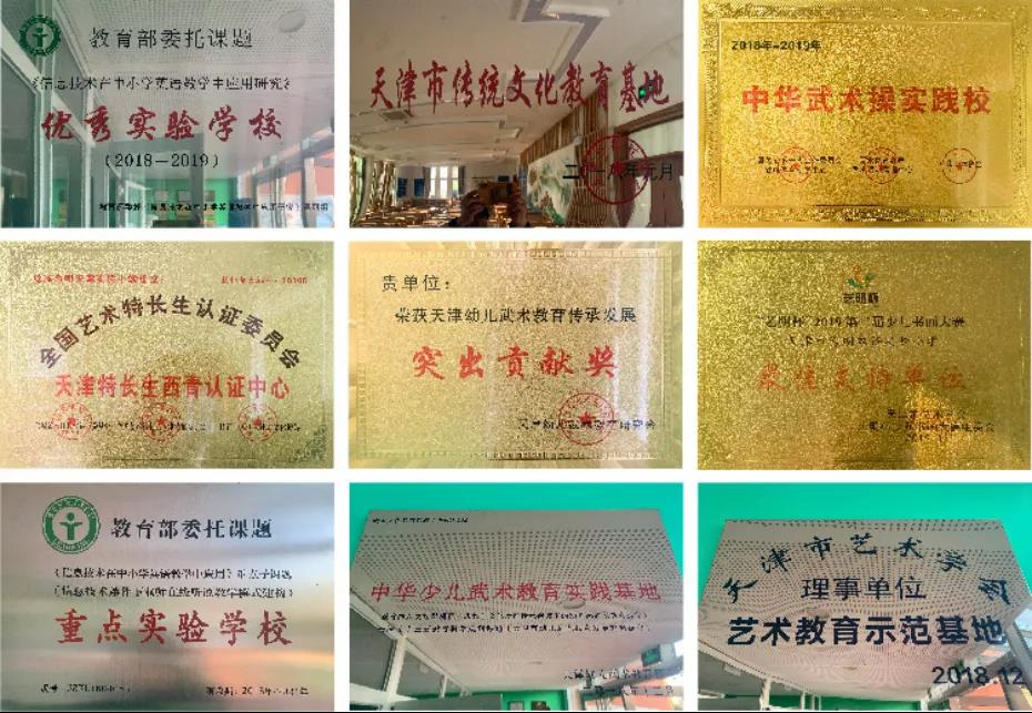 荣获教育部委托课题优秀实验学校、重点实验学校,天津市传统文化教育基地,天津市艺术协会理事单位艺术教育示范基地,国家海洋博物馆共建学校……